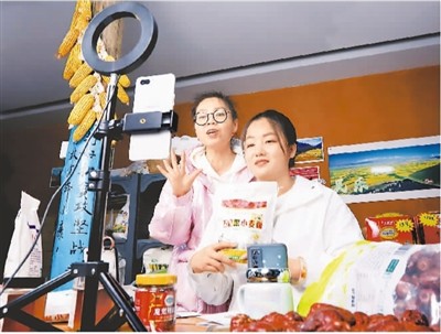 某电商主播在直播间推广农特产品。