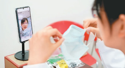 在上海市黄浦区打浦桥街道社区卫生服务中心,家庭医生在直播中与居民就戴口罩的问题进行互动。