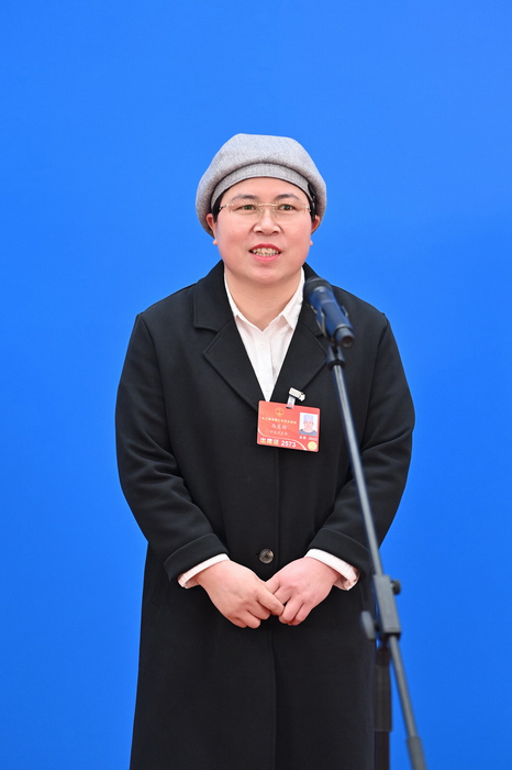 全国人大代表马慧娟通过网络视频方式接受采访。
