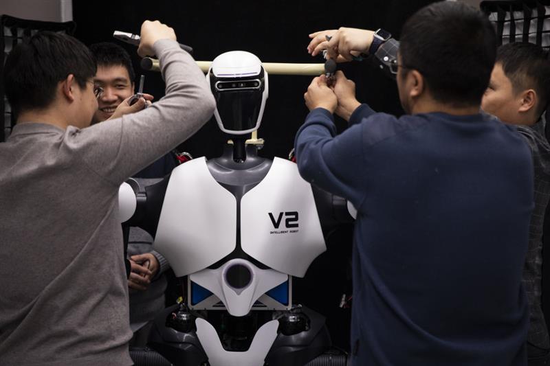 2024年1月31日,人形机器人攻关团队科研人员在多模态人工智能系统全国重点实验室调试机器人。新华社记者 金立旺 摄