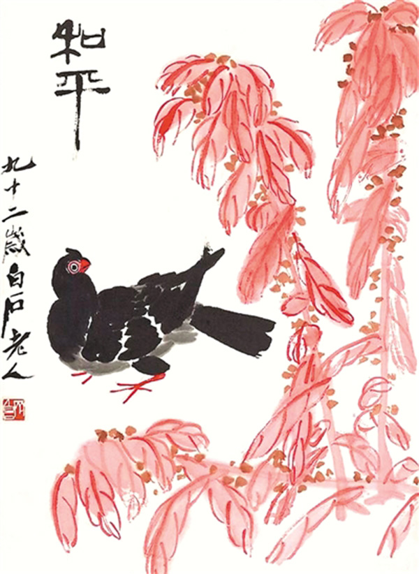 齐白石曾自述,“正由于我爱我的家乡,爱我祖国美丽富饶的山河大地,爱大地上一切活生生的生命。因而花了我毕生精力,把一个普通中国人的情感画在画里,写在诗里。直到近几年,我才体会到,原来我追逐的,就是和平。”