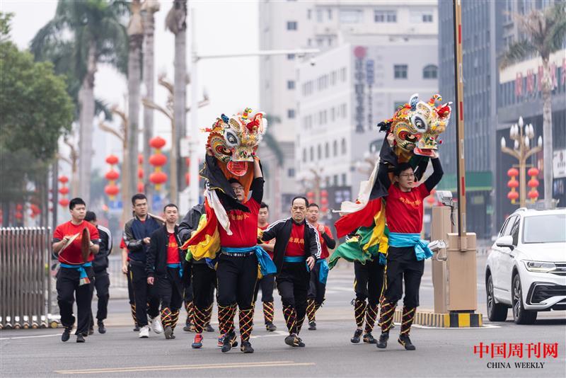 “咚咚锵,咚咚锵……”在凤岗镇竹塘村委会前空地上,锣鼓声四起,两名身形矫健的年轻后生,随着鼓点的起伏,手举麒麟,伏、卧、弯、腾、跃、跳 ,上下翻飞,威风凛凛,栩栩如生,引发现场的观众拍掌叫好。
