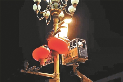 “对长安街及其周边区域进行景观布置,我们始终坚持节俭、环保理念,最大程度地采取‘利旧’原则,今年悬挂的灯笼和中国结大部分都是去年就用过的。每年在用完取下后,都会对个别损坏零件进行更新替换,以待再继续使用。目前在用的这些灯笼和中国结已经循环使用5次。”国网北京电力城市照明管理中心相关负责人表示。