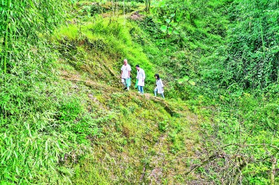 在重庆市忠县涂井乡长溪村,三位乡村医生走在乡间路上,准备入户为患者进行身体检查和健康生活知识宣讲。新华社发