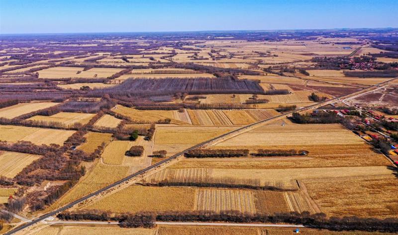 10月18日,这是通辽市奈曼旗新镇正在收获的玉米地。(无人机照片 新华社记者 连振 摄)