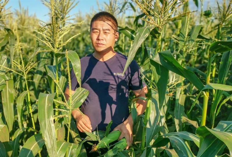 2022年7月26日,在吉林省梨树县北夏家村,邵亮亮检查玉米长势。(受访者供图)