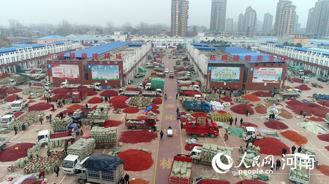 红红火火的柘城县辣椒大市场。 人民网 张毅力摄