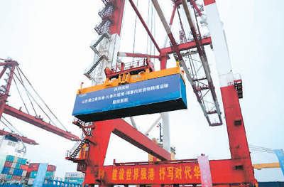 本报电 5月15日,山东港口青岛港前湾联合集装箱码头内,“海丝路1号”满载220个集装箱铜精矿驶离,成为“山东港口青岛港—扎鲁比诺港—珲春”内贸货物跨境运输航线的首航。这标志着山东港口成功开启中国北方第一条内贸货物跨境运输通道。此举助力吉林省、珲春市打开了联通世界的窗口,通过俄罗斯远东地区“借港出海”,以“端到端”全程物流服务促进山东省与吉林省、东北地区的经贸往来。