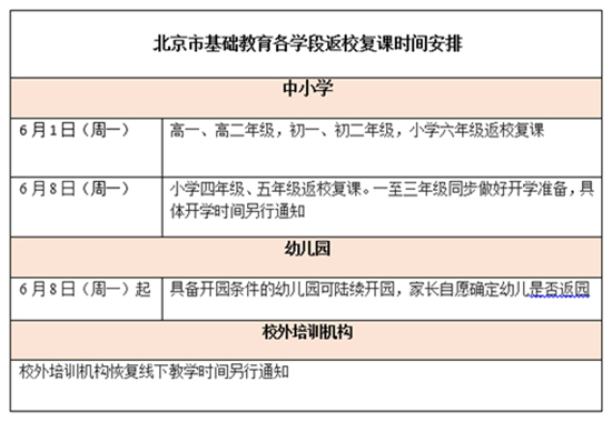 各学校、幼儿园安排教职员工提前14天到岗,通知未返京师生员工提前安排返京事宜。