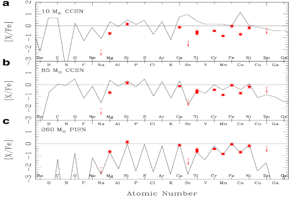 此项研究中,团队结合郭守敬望远镜低分辨率光谱和日本昴星团望远镜高分辨率光谱数据发现了一颗化学丰度极为特殊的极贫金属星(LAMOST J1010+2358),这颗恒星的化学丰度特征无法通过核坍缩超新星理论模型解释,却与260倍太阳质量的对不稳定超新星理论计算结果高度吻合。