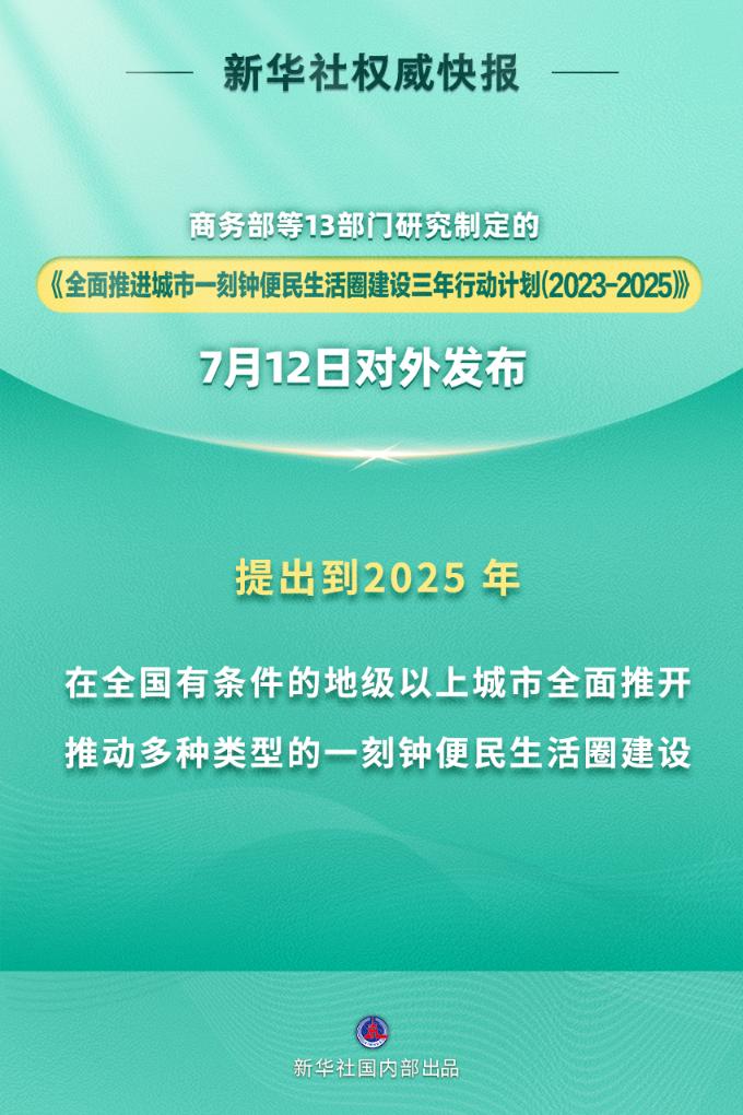 《全面推进城市一刻钟便民生活圈建设三年行动计划(2023-2025)》7月12日对外发布