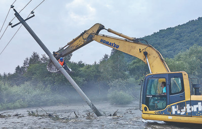 8月9日,在吉林省汪清县八人沟农场,国网吉林电力公司共产党员服务队在抢修停电线路。 |