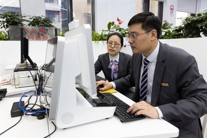 4月8日,工作人员在黄浦区政务服务中心为一家位于苏州的企业办理信息更新服务。新华社记者金立旺 摄