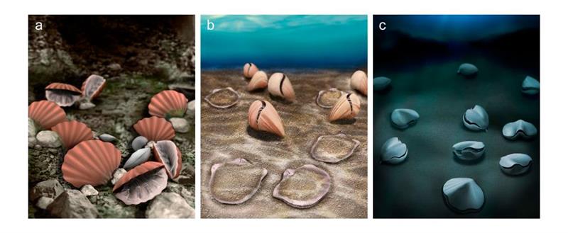 图为中—新生代部分腕足动物生态复原图。(研究团队供图)