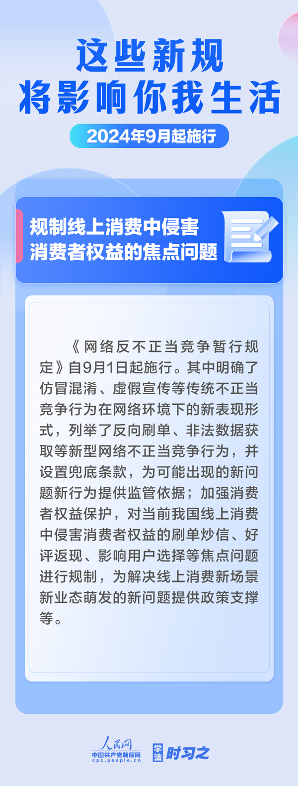 维护退役军人合法权益;规范慈善活动运行;规制线上消费中侵害消费者权益的焦点问题……9月起,这些新规施行,将影响你我生活。