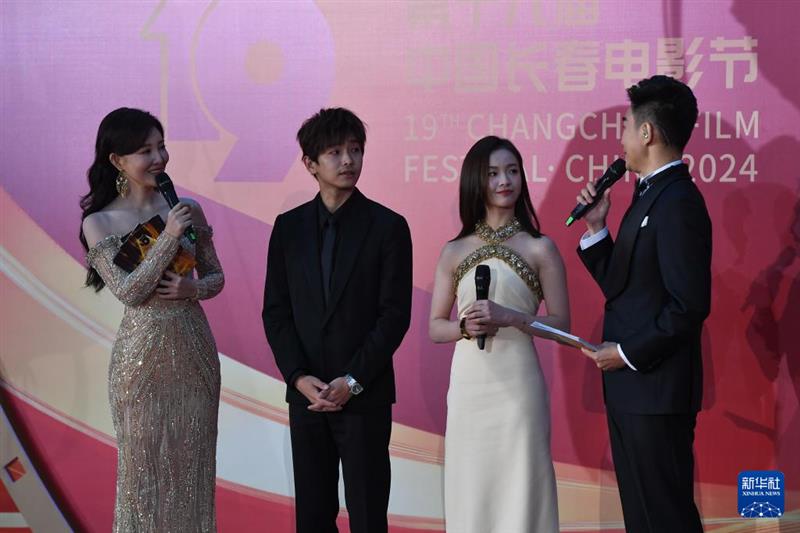 9月1日,彭昱畅(左二)、李庚希(右二)亮相长春电影节闭幕式红毯。新华社记者 张楠 摄