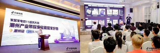 10月16-18日,抖音电商陆续联合潮州市商务局、电子商务行业协会、家用电器行业协会、工艺家居陶瓷行业协会、青年企业家联合会、潮安区外贸协会以及揭阳招商办,不锈钢协会和塑胶协会在当地举办「家居家电双11趋势大赏·探索宝藏居家好物」产业带商家启动大会,吸引了众多产业带商家参加,打造一场“全域兴趣电商”和“产业带商家”的双向奔赴。
