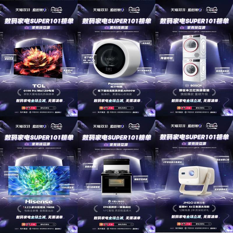 综艺同期发布的天猫双十一数码家电super101款潮电单品榜单和骁龙上榜好物便是深度共创的例证,它不仅体现了平台对年轻人消费主张的深入理解,也展示了海尔、骁龙、TCL、松下、博世、intel、海信、火星人、坚果等上榜商家对市场趋势的敏锐洞察和积极响应。