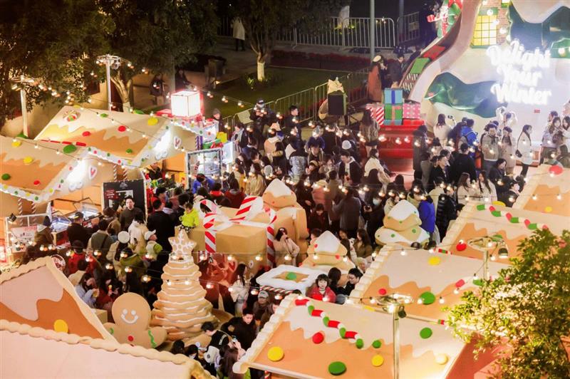 探寻冬日季奇遇,点亮岁末光彩。「梦幻姜饼镇」主题市集入口处,巨型姜饼人欢乐“迎宾”,来自海内外的精品、餐饮品牌化身为一个个姜饼小屋,共同塑造出童真感十足的小镇场景,让消费者在萌趣纷呈的色彩中收获别样乐趣。