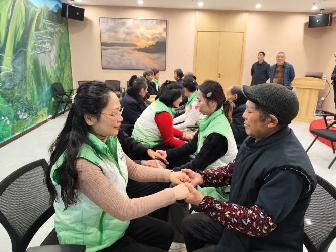 12月3日下午,上海市志愿服务公益基金会健康服务专项基金和双河社区居民委员会在恩施双河镇都市花园酒店康养基地举行了一个别开生面的活动,来自上海、山东、湖北等地的志愿者服务团队,与当地组织的长者进行了爱与陪伴互动,用满腔的热血、真诚的爱心、专业的技术慰籍了参加活动的几十位长者的心灵。