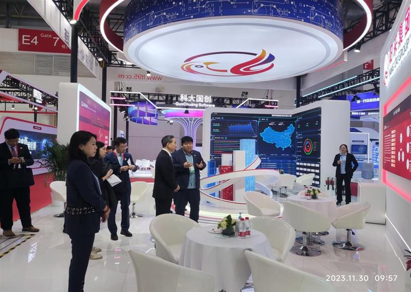 在参观过程中,任鸿斌会长对阳采集团的发展战略及数字化供应链建设给予了高度赞赏和认可,并期望阳采集团能够继续强化数字化供应链的建设与发展,并利用此次链博会的特色优势,通过数字科技手段,串联起上下游产业的供应型企业,实现产业供应链与数字科技链的协同并进。