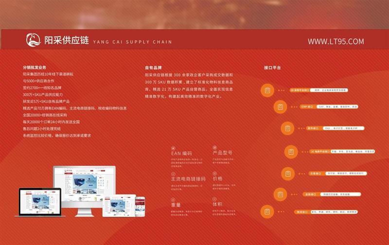 阳采供应链根据300余家政企客户采购成交数据和300万SKU数据积累,建立了行业领先的巨量产品标准化编码数据库,精选11万SKU产品自营商品,70万具备EAN编码、主流电商链接码、税收编码三码精准化信息数据,全面实现信息精准数字化,构建起高效精准的数字化产业,信息精准维护和动态仓位管理的基础物料需求。可以实现一站式为大型企业客户提供直营供货,现福利商城累计为超700万职工提供福利解决方案。