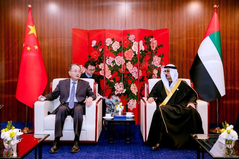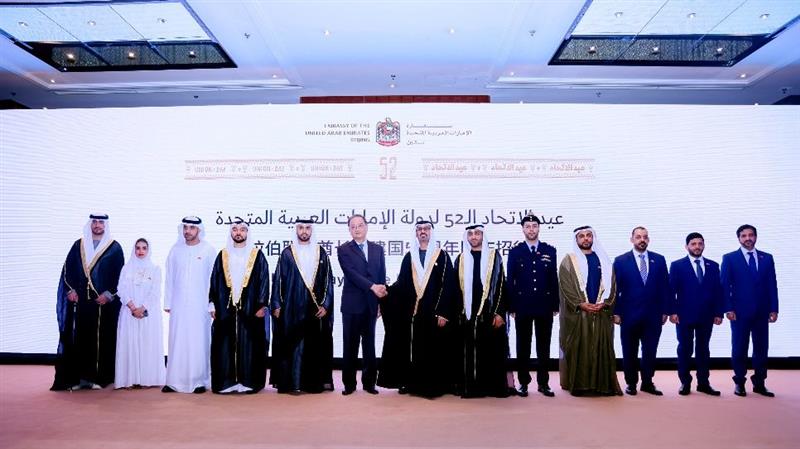 阿拉伯联合酋长国驻华大使侯赛因·本·易卜拉欣·哈马迪阁下在中国外交部副部长邓励阁下的见证下发表讲话,强调了阿拉伯联合酋长国在以总统谢赫·穆罕默德·本·扎耶德·阿勒纳哈扬殿下为首的英明领导下,近50年来取得了令人引以为傲的成就。阿联酋领导层始终把提升阿联酋公民福祉视为首要任务,持续推动国家实现卓越、稳定和可持续发展。
