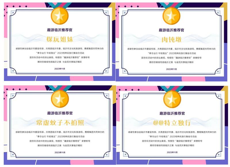 “奉令出行 年轻做主”临沂特种兵旅行集结令活动进一步丰富了临沂市云端旅行内容宽度,选手们通过图文、视频等方式,从美食、交通、体验等多种角度,挖掘更多临沂旅游线路攻略新玩法,综合提升了临沂旅游目的地的吸引力。据悉,此次“奉令出行 年轻做主”临沂特种兵旅行集结令活动经过严谨评审,共有19位用户凭借内容优异的热度脱颖而出被授予趣游临沂推荐官称号,并获得最高5000元旅行金奖励。
