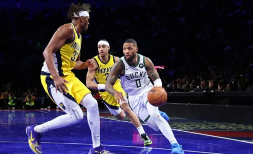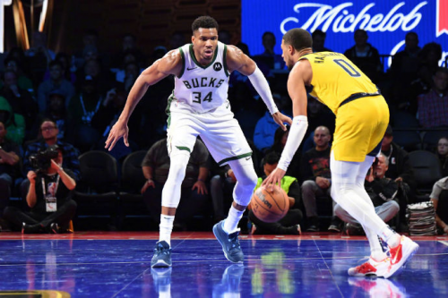 双方本场比赛交手之前,在本届季中赛中皆保持不败。本场比赛中,雄鹿队的康诺顿和克劳德继续因伤缺战,步行者队的杰伦·史密斯缺阵,双方阵容皆有缺席。比赛开始,双方势均力敌,随后雄鹿队持续发力一度获得7分优势。步行者特纳攻防两端表现不错带队追赶,但利拉德首节6中0一分未得。次节步行者火力全开,哈利伯顿直冲篮下,连线底角托平三分飙中。雄鹿队命中率下降,只能依靠字母哥苦苦支撑,半场战罢步行者63-51领先雄鹿。