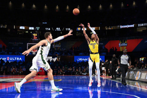 北京时间12月8日,NBA 2023-2024赛季季中锦标赛的两场半决赛在拉斯维加斯的T-Mobile Arena正式开战。北京时间上午6点密尔沃基雄鹿队与印第安纳步行者队率先开战,最终步行者队128:119击败字母哥扬尼斯·阿德托昆博领衔的雄鹿队,成功晋级季中锦标赛决赛。步行者队后卫哈利伯顿延续优异表现,在本场比赛中凭借27分7篮板15助攻0失误继续领跑季中赛MVP排行榜。