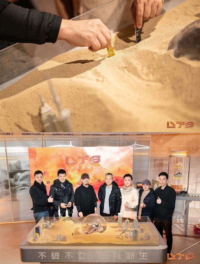 当作为「密匙」的天河船票被插入未来实验室沙盘中的荒芜沙漠,伴随着地壳震动流沙陷落,被掩埋的新世界之城缓缓破沙而出,媒体与嘉宾共同见证了U.T.B首发废土机能鞋“Horizon 001”的正式亮相,并一起签署了「未来见设者计划」,共同为未来发力。