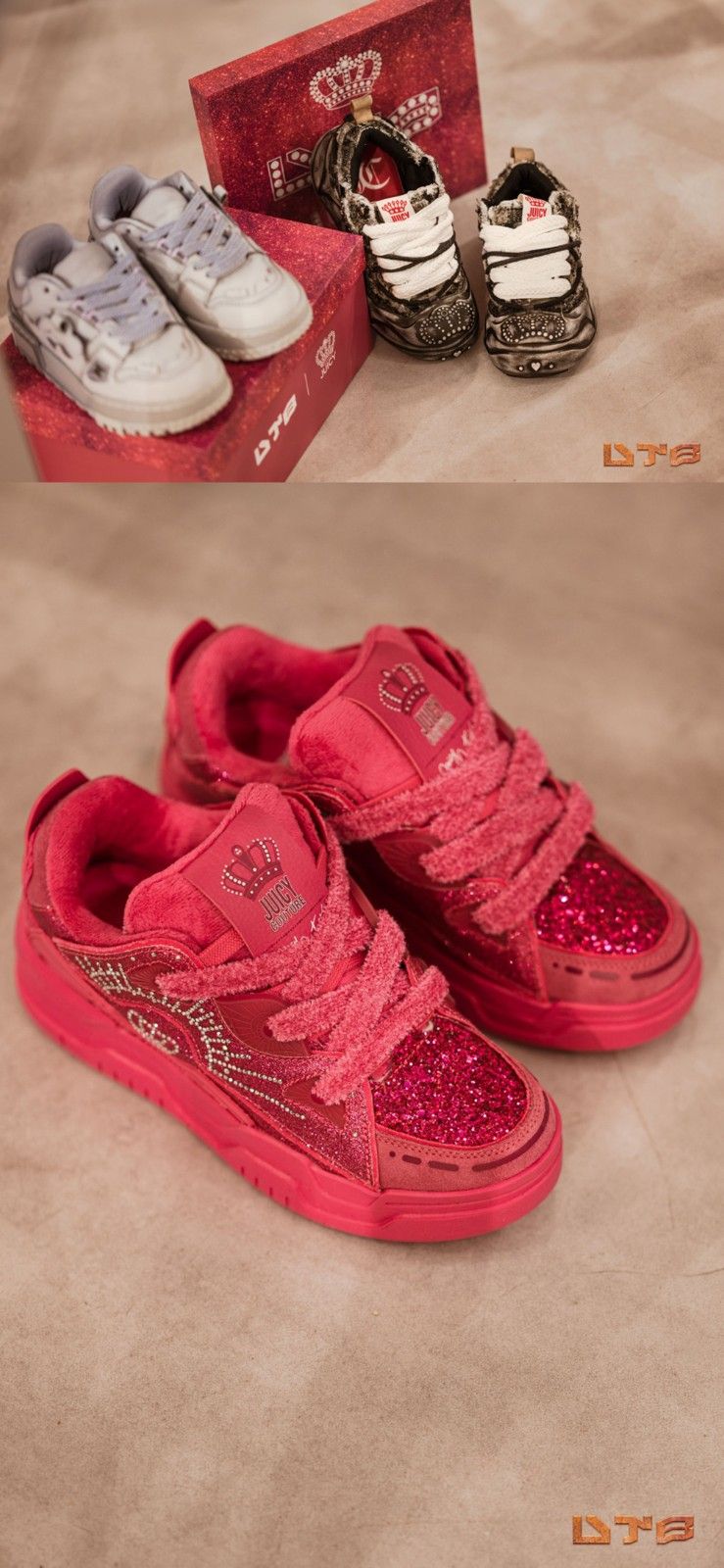 联名款“Horizon 001 × Juicy Couture”系列与“Horizon 001”同步首发,鞋侧使用格丽特材质,更具女性化特征,在其表面使用了JC的烫钻工艺,将不同个大小的水钻组成射线图案及JC的皇冠图案。整体色彩搭配使用了玫瑰红色,呈现色彩多元化搭配的丰富性。