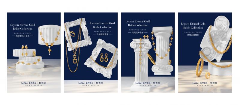 当下婚嫁黄金市场存在一个巨大的矛盾:传统三金是婚嫁的重头戏,但是传统的设计极其老套,小仙女们直呼无法下手。本次莱绅通灵致力于要做传统婚嫁金市场的“搅局者”,推出更符合现代年轻人审美的传世金·花嫁系列。此系列包含桃金娘花环套系、马蹄逐梦套系、鸢尾花开套系及月桂花冠套系,围绕传统婚嫁首饰的基础需求,精选欧洲文化脉络的经典元素,以「意大利织金工艺」雕绘锻造,演绎出具有高级审美的婚庆黄金。