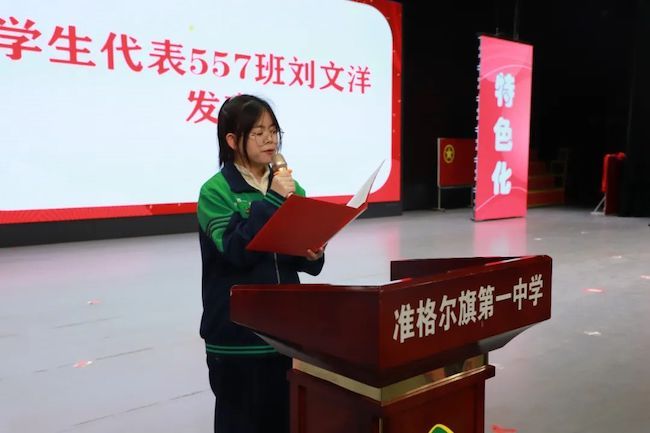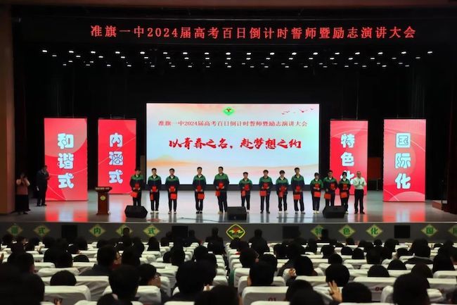 2月28日下午,准旗一中在报告厅举行2024届高考百日倒计时誓师暨励志演讲大会。校级领导、全体高三师生和部分家长代表参加了大会。大会由高三年级部主任高磊主持。