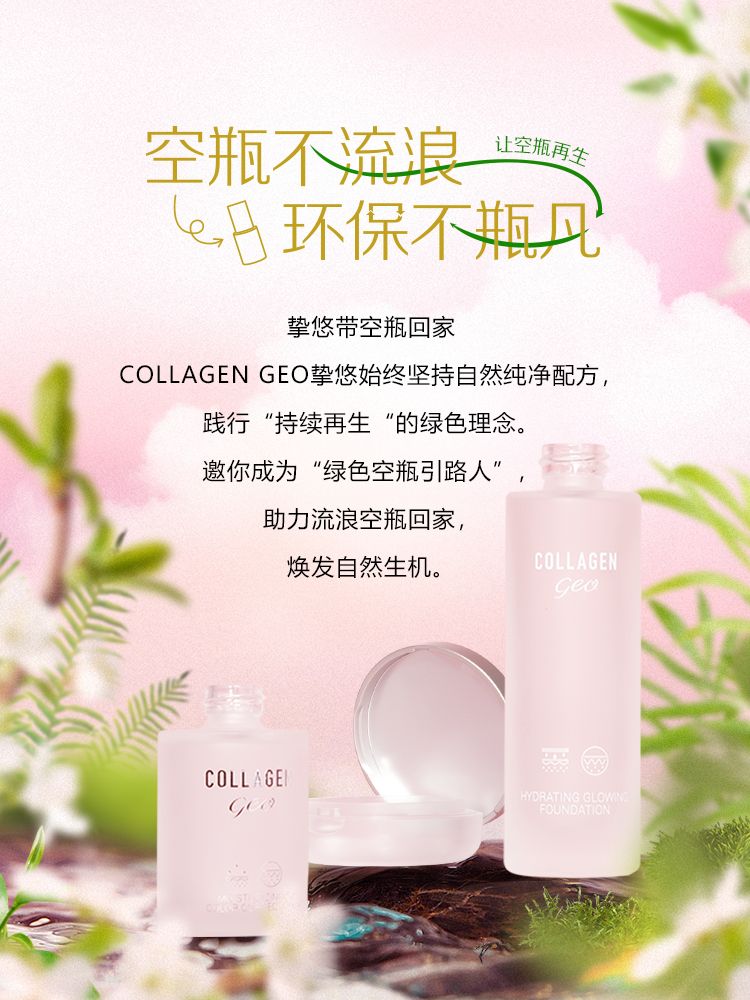 淳色限定系列的产品包装亦独具匠心。不仅外包盒点刻盲文,关注使用彩妆的所有人群,全线产品也应用环保包材、精巧设计可DIY手机支架的内衬,在环保的基础上为消费者带来更加新奇的产品体验。另外,胶原挚悠还在微信线上小程序开放空瓶回收,鼓励更多消费者加入环保行动,将环保共生与用心贯穿产销始终。