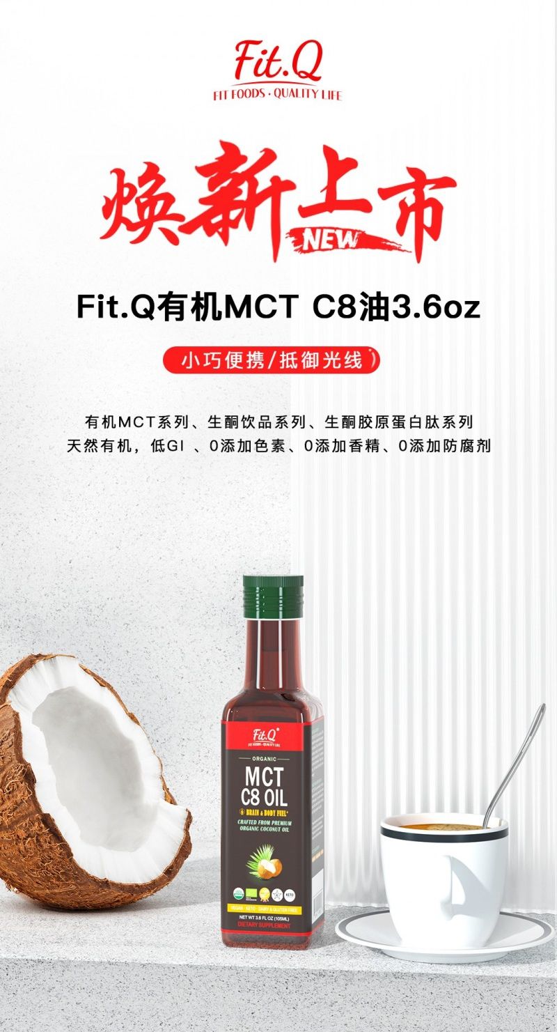 有机MCT系列、生酮饮品系列生酮胶原蛋白肽系列天然有机,低GI,0添加色素0添加香精、0添加防腐剂现在手机天猫/淘宝扫一扫下单也可直接在天猫/淘宝APP上搜索:Fit.Q海外旗舰店