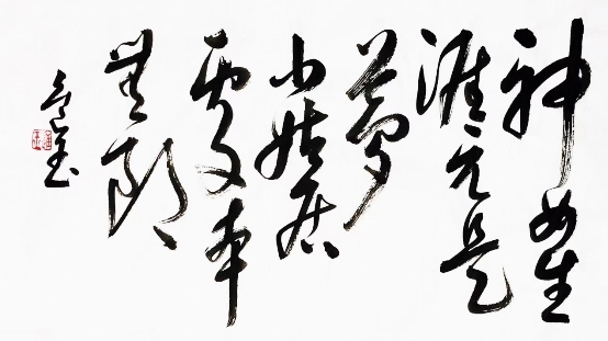 书法兰亭奖获得者、中国书法家协会会员孔祥宇曾撰文写道:书法不只是一门艺术,更是根植在深厚的中国传统文化土壤下的一种文化,当今有远见的书法家,在积极创作的同时,一直在不断地向厚重的中国传统文化中寻求书法的根基。品读王进玉先生的作品,这样的特点随处可见。用笔灵动率意,墨色多变,这是他对经典书法元素进行开掘、提炼和充分整合的结果。既有对传统的坚守,又有时代的创新,真正实现了历史的厚重与时代的审美结合。章法整体和谐,变化而又统一,具有很强的形式美。行草书贵在用笔、用墨。观王进玉先生的墨色,恰为适中,用墨干净爽落,墨色伴随书写过程展开,随同点画、字型、章法变化而变化,并参与到整体节奏感的表现中,浓淡干湿能够随心所欲,使作品有很强的音乐效果。给观者的感觉是新意迭出,厚重中无板滞之迹,秀逸中无拗戾矜张之气,有着无限的生机和情趣。(冯倩)