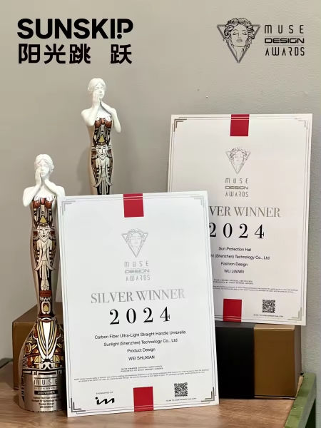以钛银伞俘获众多防晒人群的SUNSKIP阳光跳跃防,在2024美国MUSE Design Awards(缪斯设计奖),凭一顶超酷的Sun Protection Hat-防晒帽,从从全球108国家和地区,数万参赛作品中脱颖而出,斩获2024MUSE Product Design产品设计类银奖,同时,他家的Carbon Fiber Ultra-Light Straight Handle Umbrella-碳纤超轻直柄伞,也毫无意外的获得了Fashion Design时尚设计类银奖,这个牌子,竟然一举拿下两项国际级别奖项!