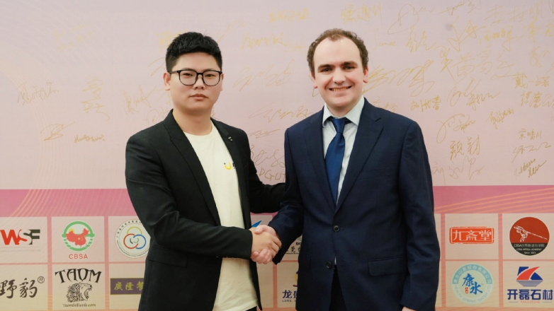 小铁自助台球创始人陈孝钦与wws世界女子斯诺克协会董事马特.华合影