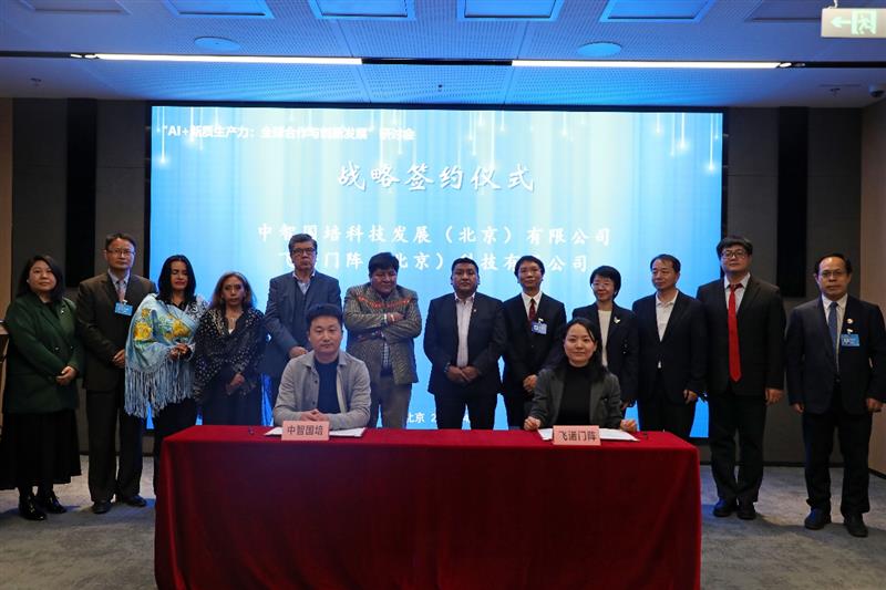 会上达成的另一重磅战略合作,是飞诺门阵与中智国培签署的AI教育行业战略合作,飞诺门阵科创合作负责人罗诗瑶与中智国培数字经济研究院院长、研发部部长王树林代表双方签约,许云副主席、陈鹏书记、张宏部长、沈寓实董事长、靳中美总经理及玻利维亚国家参议院参议员Hilarion、参议员Santos、玻利维亚国家科学院院长Lorgia等外宾共同见证签约仪式。中智国培是由国务院国资委直管、中智科技集团旗下以“政企培训”为核心业务的子公司,旨在实现中智集团服务国家战略所需要的创新与数字人才、复合型人才建设的战略目标。飞诺门阵是人工智能理论创新、产品研发与产业实践方面的佼佼者,在泛安防、水利、能源、教育、应急等领域均有诸多实践案例与经验,对于AI产业发展趋势与行业人才需求有精准认知。双方将响应国家发展新质生产力的政策号召,充分发挥各自的资源、资本、人才、技术、市场等优势,聚焦AI与新质生产力相关的联合课题申报、行业人才培养、团标制定、科技成果转化、行业垂直模型及场景算法研究等,面向人工智能职业教育领域研发更多解决方案,推动AI教育行业发展、完善新质生产力人才培养体系。