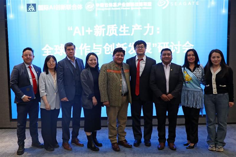 “AI+新质生产力:全球合作与创新发展”研讨会,是由北京新联会、北京市侨联指导,海淀地区海联会、海淀区侨联、海淀区科协、政协北京市海淀区港澳台侨委员会联合主办,北京新联会建言献策专委会、海淀地区海联会经济科技专委会、希捷科技、飞诺门阵科学技术协会共同承办,国际AI创新联合体、玻利维亚国家科学院中国中心、北京海促会科技交流专委会协办的重要活动。北京市海淀区政协副主席许云在致辞中明确指出:海淀区长期着力发挥科技创新引领作用,重点在人工智能产业以及战略性新兴产业和未来产业等领域发力;本次活动主题紧扣时代与发展脉络,不仅是对科技发展趋势的深刻洞察,更是对未来发展的前瞻性思考。北京海新域城市更新集团常务副总经理朱江与玻利维亚国家参议院参议员Hilarion也分别为本次研讨会致辞,均对本次研讨会上发布的多项成果表示高度期待,也期待基于本次研讨会的深度交流开展更深入更广泛的政产学研协同发展和国际科创合作。