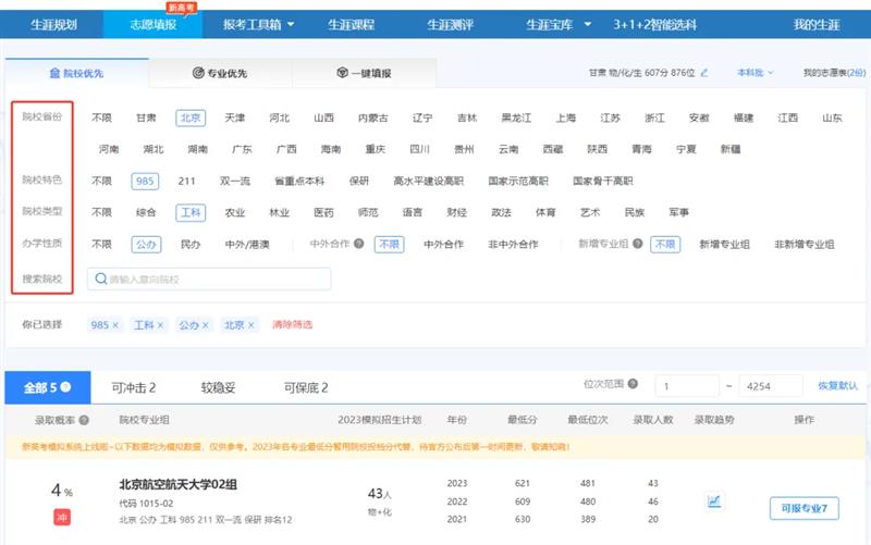 依托先进的AI自主学习算法,考生只需输入高考分数、位次以及所选科目,系统将迅速且精确地为用户筛选出理想的院校名单。