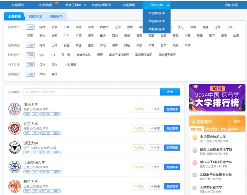 除了提供专业智能填报系统外,升学e网通还为各位考生准备了报考工具,包括提前批、学科评估等关键数据的查询功能,无论是提前批次的特殊要求,还是学科评估的详细数据,考生可以快速了解信息。