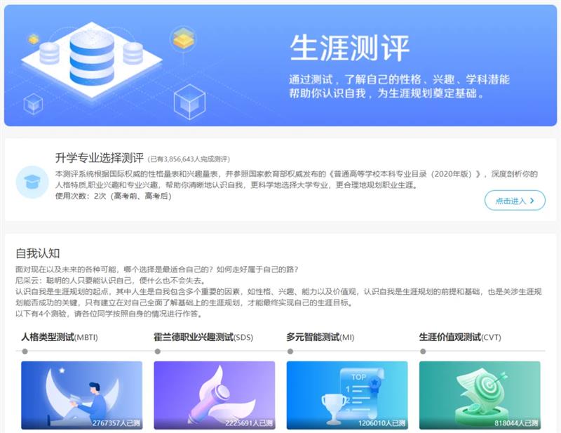 科学生涯测评多维度助力考生深入挖掘自我潜能,量身定制个性化专业建议,帮助考生更清晰地认识自我,更科学地选择院校、专业,更合理制定志愿填报方案。