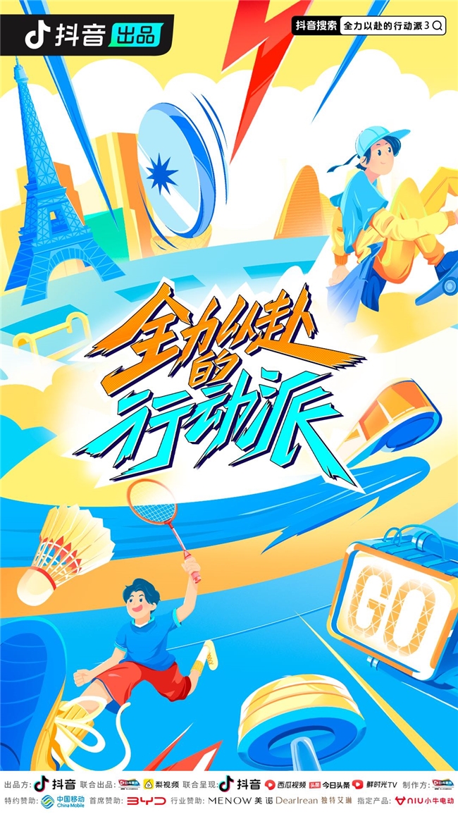 7月4日,抖音独播的《全力以赴的行动派》第三季正式播出第一期,该节目由抖音出品,日月星光、梨视频联合出品,日月星光承制。今年正逢第33届夏季奥运会,全民健身也已成为近些年的风尚。在奥运年与社会潮流趋势的双重buff下,本季节目以潮流运动为主题,延续了往季的城市探玩内核,并在此基础上融合当代城市青年风向与潮流酷玩,将Z世代精神贯彻到底。此外,本季新增的行动小屋环节,在迅速拉近黄明昊、林一、秦霄贤和王玉雯彼此关系的同时,输出的社交话题也引发了网友们的热议。