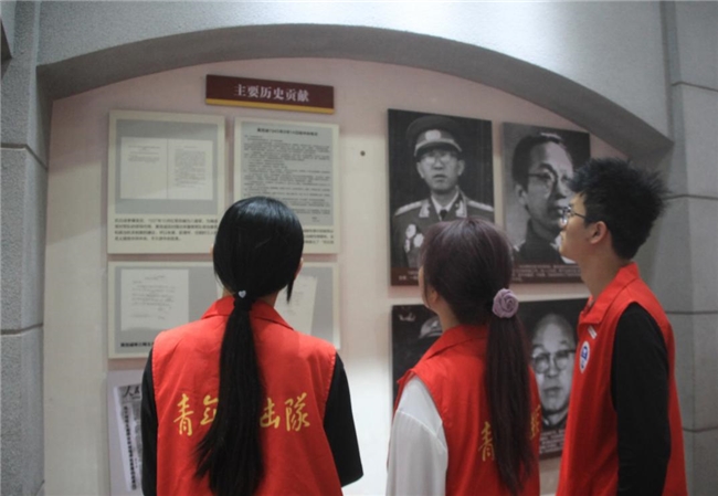 (“星星之火”团队成员从黄克诚同志的纪念物件中感受革命精神)