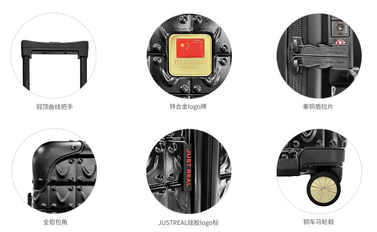 据介绍,“英俑”系列行李箱的设计是以中国的世界文化遗产为构思源泉,从构思到设计研发,前后将近一年半的时间。箱体以红黑为主色调,造型设计灵感来源于兵马俑、鱼鳞甲,箱体上方缀以将军俑同款领结,底部轮子仿造古代战车车轮的造型,拉杆提手采用兵马俑头巾形象,拉链设计灵感源于一号铜车马上的秦铜盾。箱体中间嵌有国旗的金属牌,则象征着金牌的荣耀与梦想。除外部细节考究外,箱体的内部采用了半封闭的状态,在承装更多东西的同时,运动员的隐私也不会被侵扰。