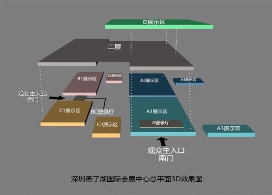 深圳燕子湖国际会展中心是全国知名展馆之一,也是深圳第三大展馆,而且也是环境和配套设施最完善的展馆,占地面积约8.7万㎡,总建筑面积约13.3万㎡,展馆分为9个展示区,其中包含A1展示区、A2展示区、A3展示区、A4展示区、B1展示区、B2展示区、C1展示区、C2展示区、D展示区。