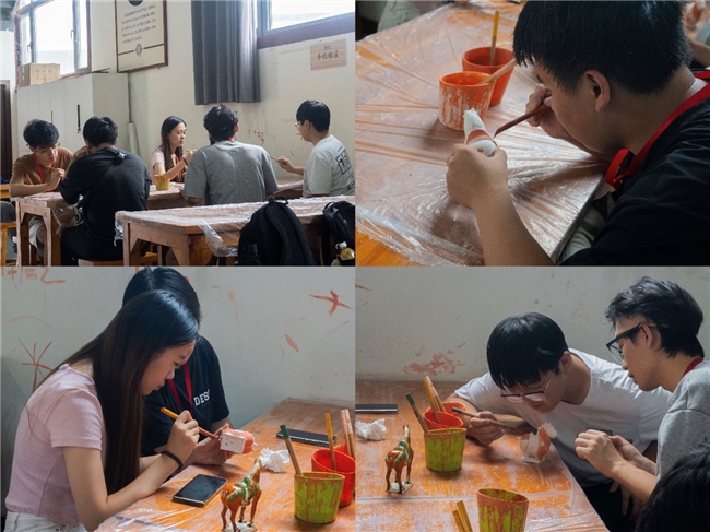 走进面塑的世界,实践团被温艮宽老师与宋展克老师的精湛技艺所震撼。宋老师通过独特手法创造出生动形象的作品,并从中国画意境中获取灵感进行创新。