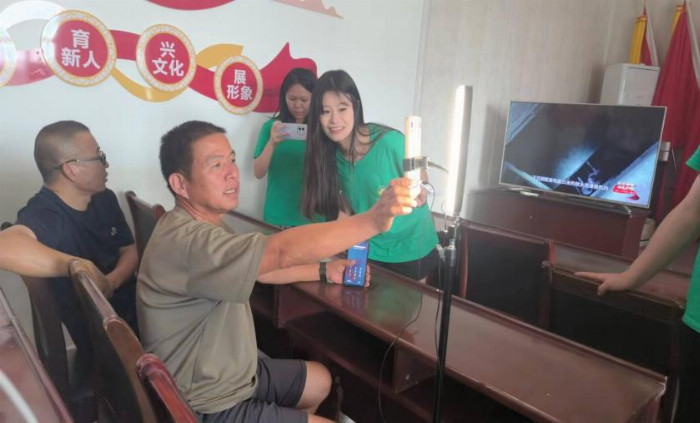 图为实践队员为村民传授直播带货技能 刘嘉庆摄